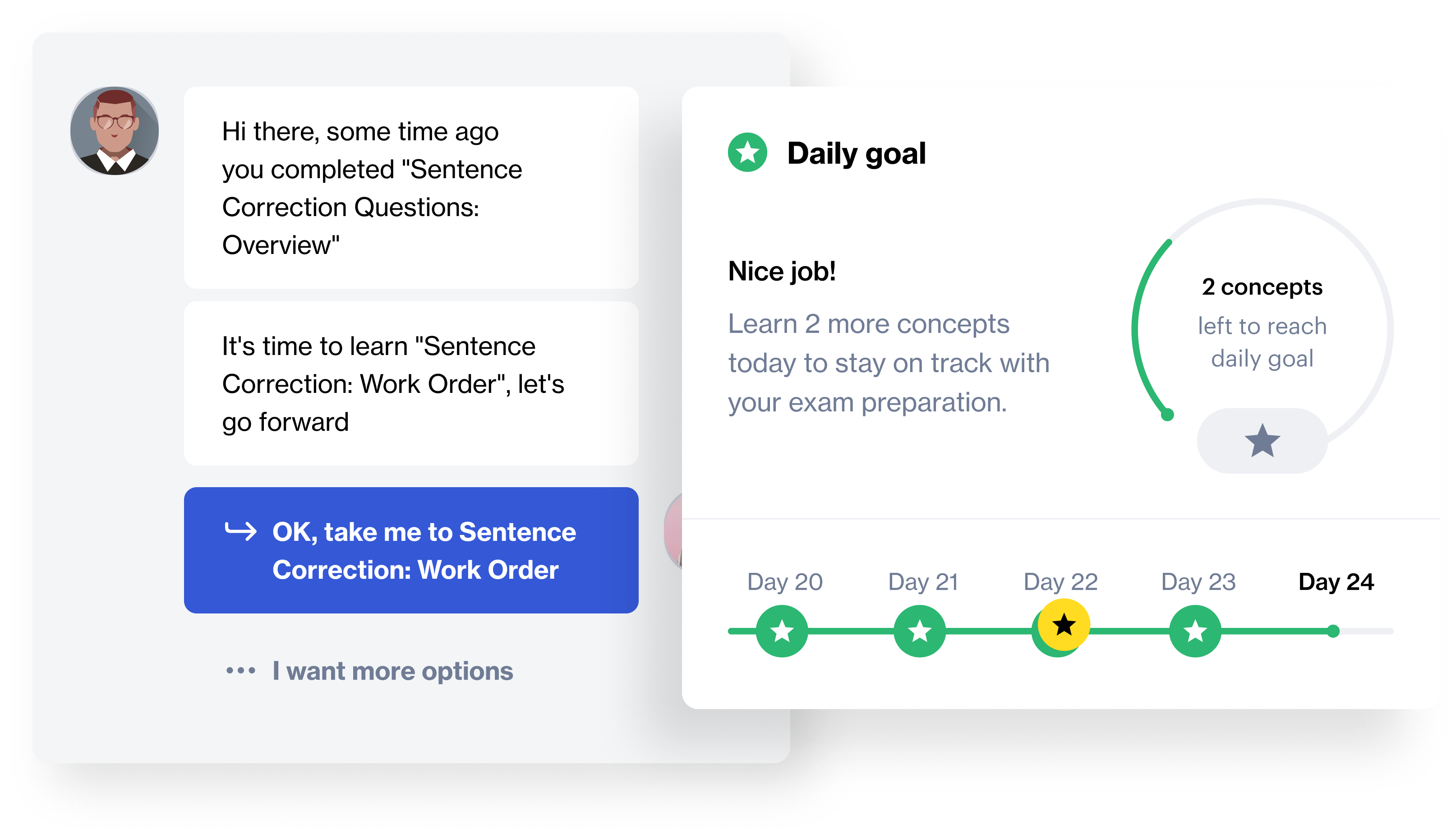 b) Reach at least 95% progress through the exam prep course by the day preceding your exam date (you can view your course progress percentage at any time on your course dashboard); and